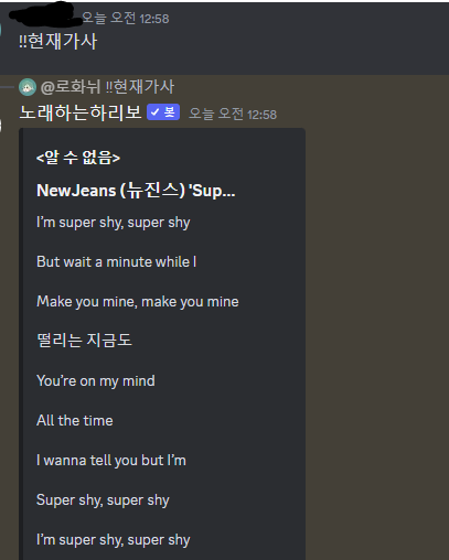 가사들도 인터넷 켤 필요없이 디스코드로 볼 수 있다는 장점이 있네요!