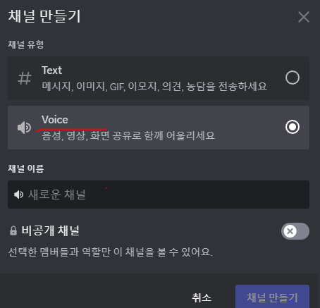 여기까지 서버만들기, 채팅채널 만들기, 음성채널 만들기까지 해보았습니다. 아주 간단한 작업이기 때문에 어렵지 않게 하실 수 있을거에요~ 다음 시간엔 이렇게 만든 서버를 예쁘게 꾸며볼 거에요!