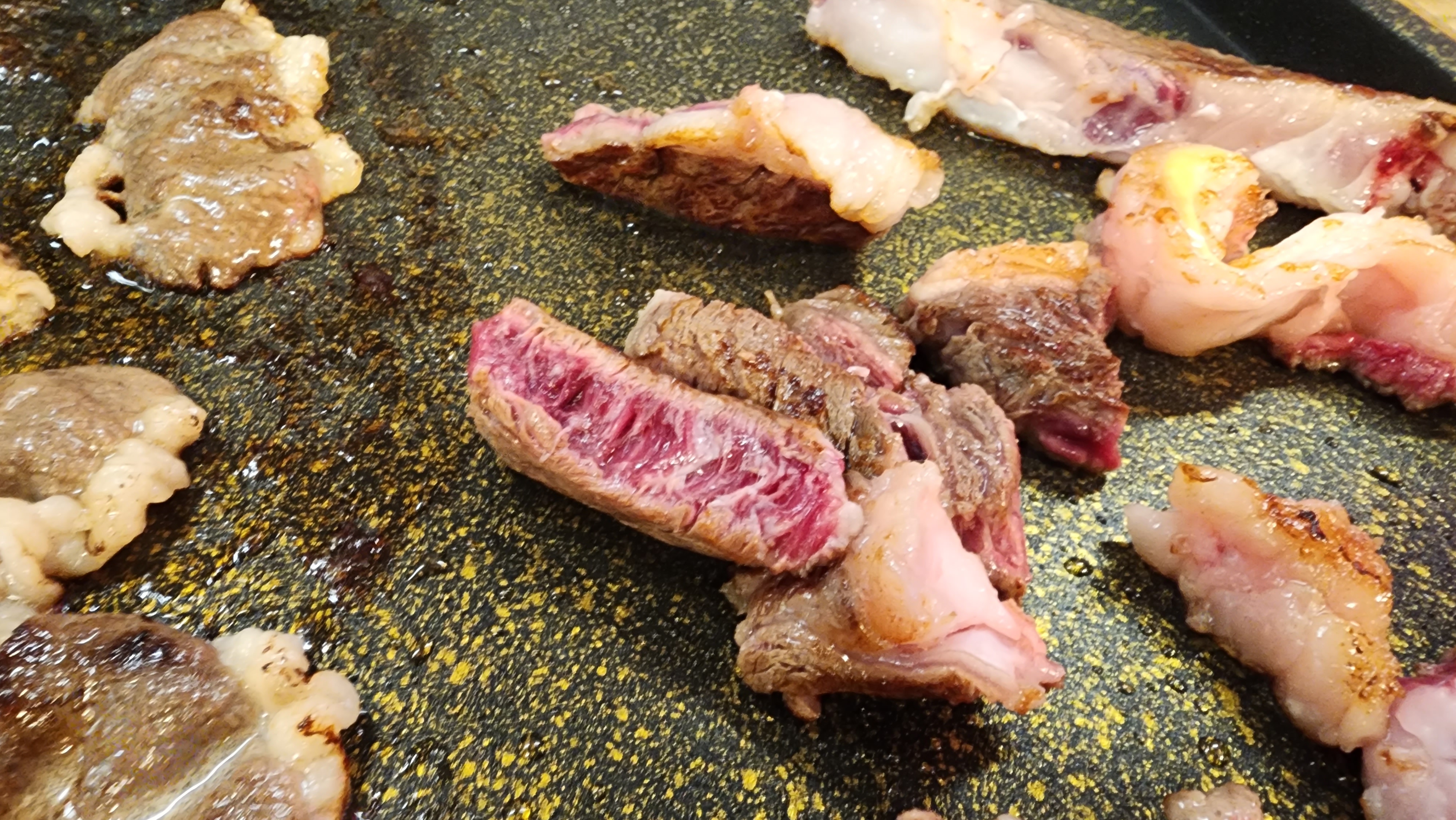 먼저 익은 차돌박이를 먹으면서 등심 익기를 기다리는데