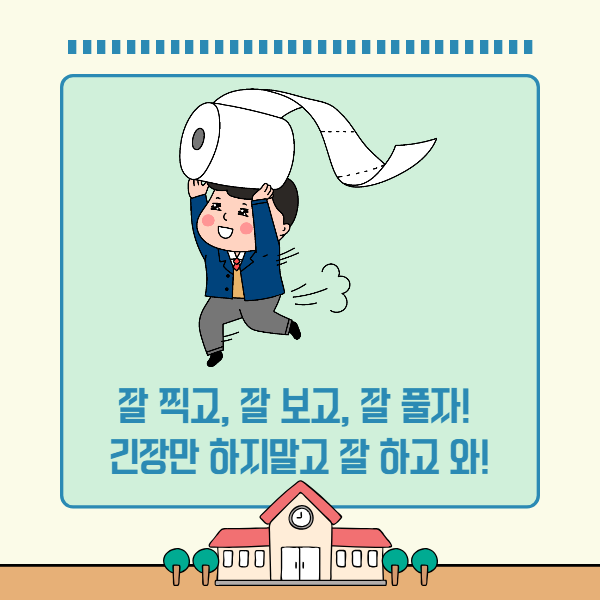 - 잘 찍고, 잘 보고, 잘 풀자! 긴장만 하지말고 잘 하고 와!