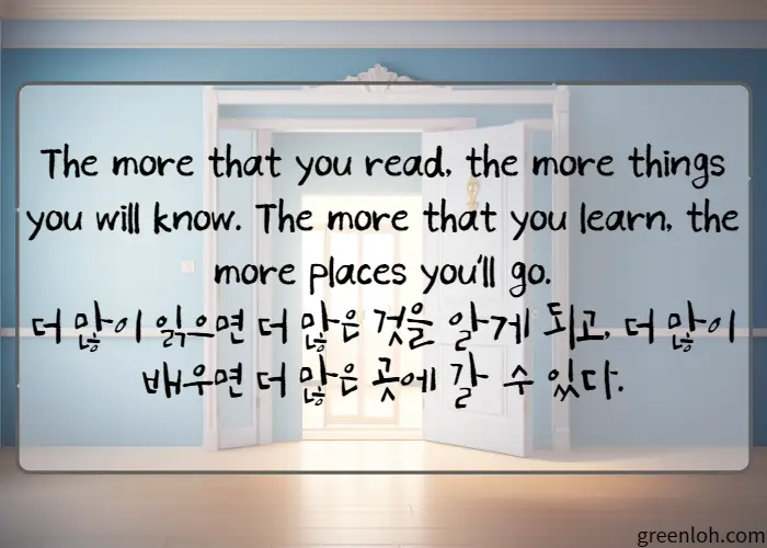 더 많이 읽으면 더 많은 것을 알게 되고, 더 많이 배우면 더 많은 곳에 갈 수 있다.
