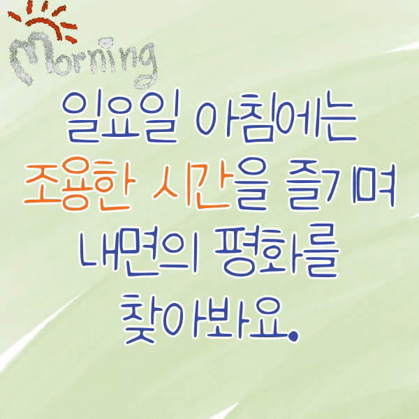 일요일 아침에는 조용한 시간을 즐기며 내면의 평화를 찾아봐요.