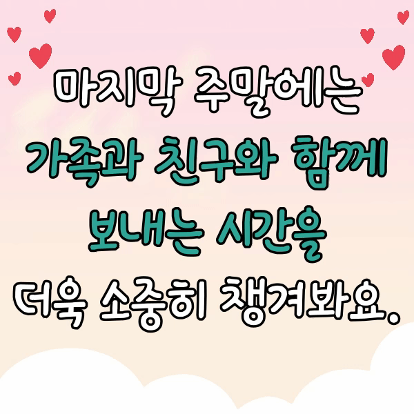 마지막 주말에는 가족과 친구와 함께 보내는 시간을 더욱 소중히 챙겨봐요.