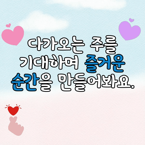 다가오는 주를 기대하며 즐거운 순간을 만들어봐요.