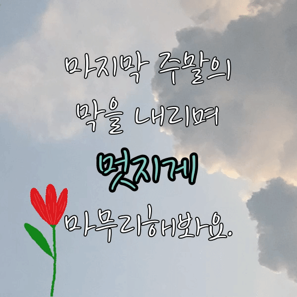 마지막 주말의 막을 내리며 멋지게 마무리해 봐요.