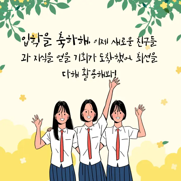"입학을 축하해, 이제 새로운 친구들과 지식을 얻을 기회가 도착했어. 최선을 다해 활용해 봐!"