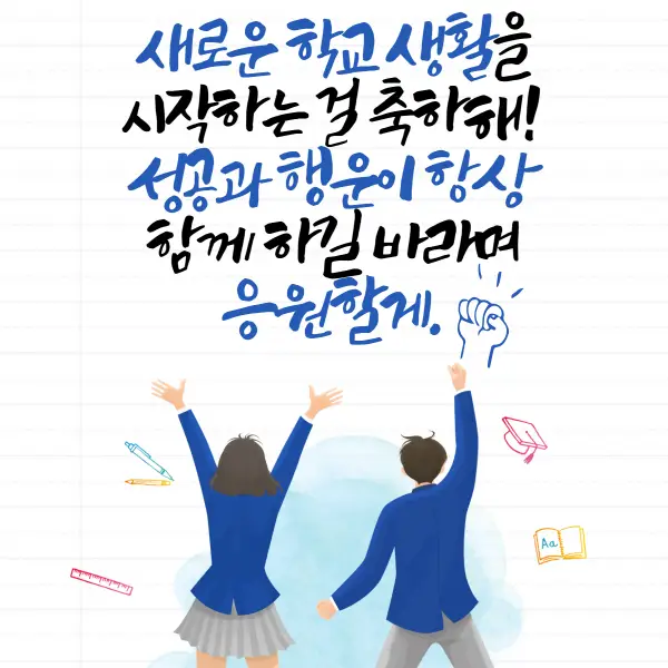 "새로운 학교 생활을 시작하는 걸 축하해! 성공과 행운이 항상 함께 하길 바라며 응원할게."