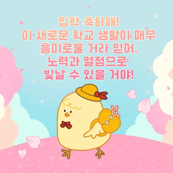 "입학을 축하해! 새로운 모험의 시작이야. 열심히 공부하면서 멋진 순간들을 만들어봐."