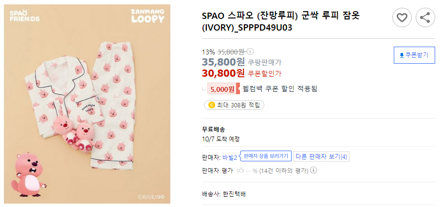 잠옷도 스파오 브랜드에서 나오는 콜라보 잠옷을 추천드립니다. 짱구나 마루 캐릭터처럼 친구가 좋아하는 캐릭터가 스파오와 콜라보했다면 더 극대화되는 선물이겠죠?