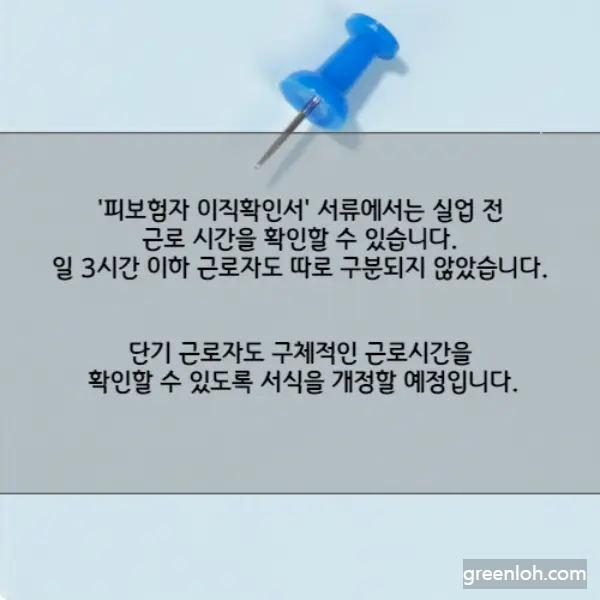 '피보험자 이직확인서' 서류에서는 실업 전 근로 시간을 확인할 수 있습니다.